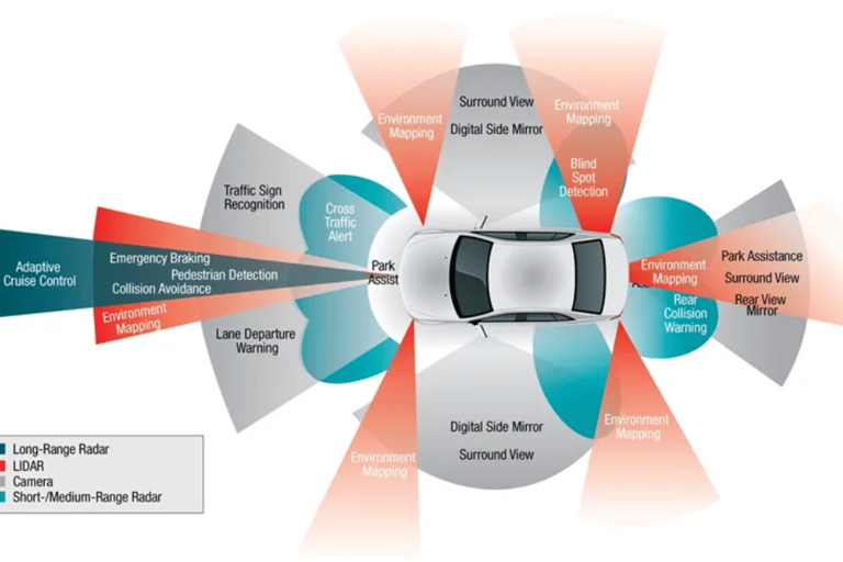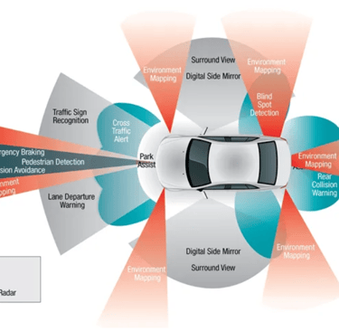 Sensors are foundational components in autonomous systems, serving as the vehicle's means of perceiving and interpreting the external environment, analogous to human sensory systems. All autonomous driving algorithms rely on the integrity and quality of sensor-derived data. The following figure illustrates the principal sensors commonly used in autonomous vehicles. It is important to note that these are specialized for autonomous driving and exclude standard automotive sensors such as those monitoring voltage, airbag deployment, or tire pressure.